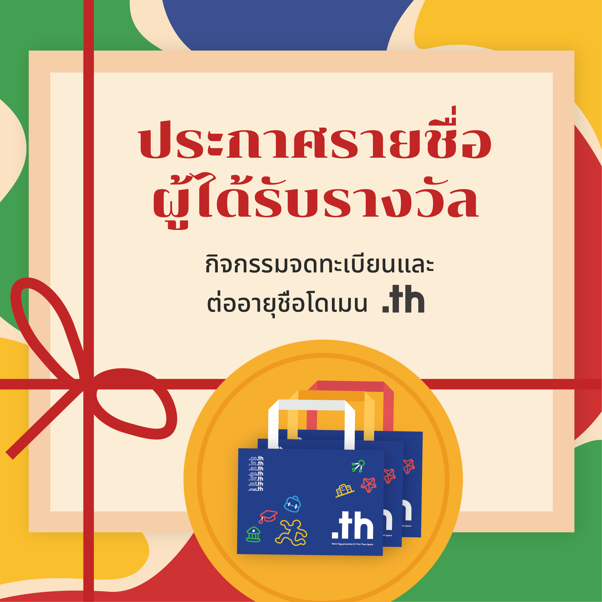 ![]() | 6 มกราคม 2568 ประกาศรายชื่อผู้ได้รับรางวัลเดือนมกราคม 2568กิจกรรมจดทะเบียนและต่ออายุชื่อโดเมน .th |