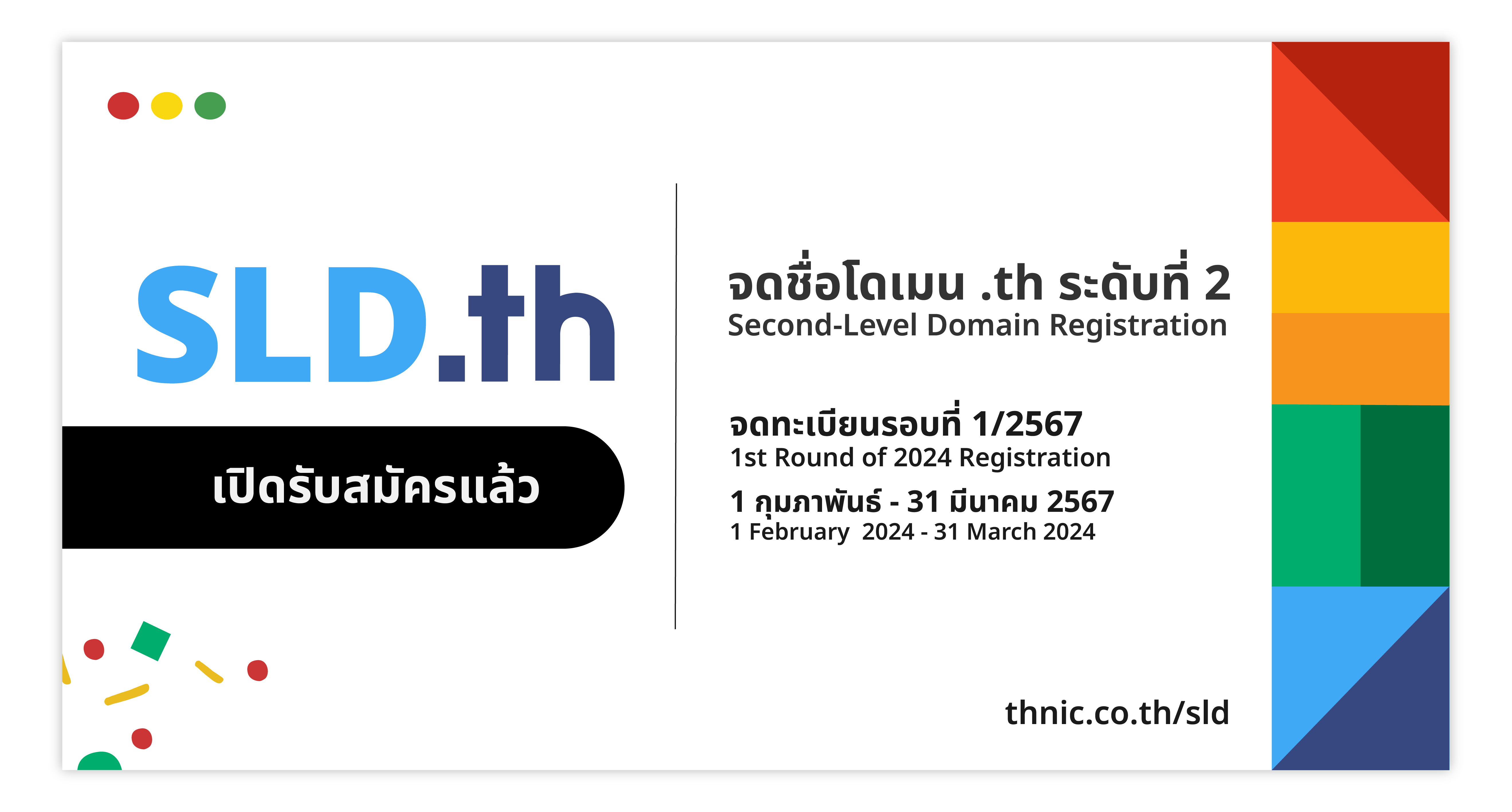 ผู้สนใจจดทะเบียนชื่อโดเมน SLD.th รอบที่ 1/2567 สามารถดูรายละเอียดได้ที่